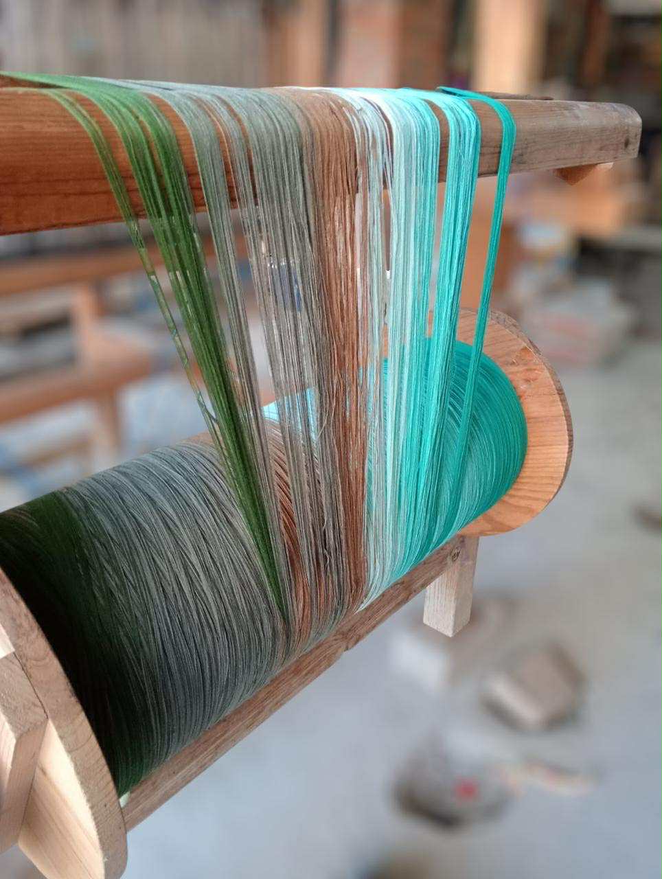 Nuestro taller de telares, empieza a organizarse para empezar a realizar nuestros lienzos, el conteo de hilos para formar el urdimbre y nuestros degradados únicos y espléndidos.