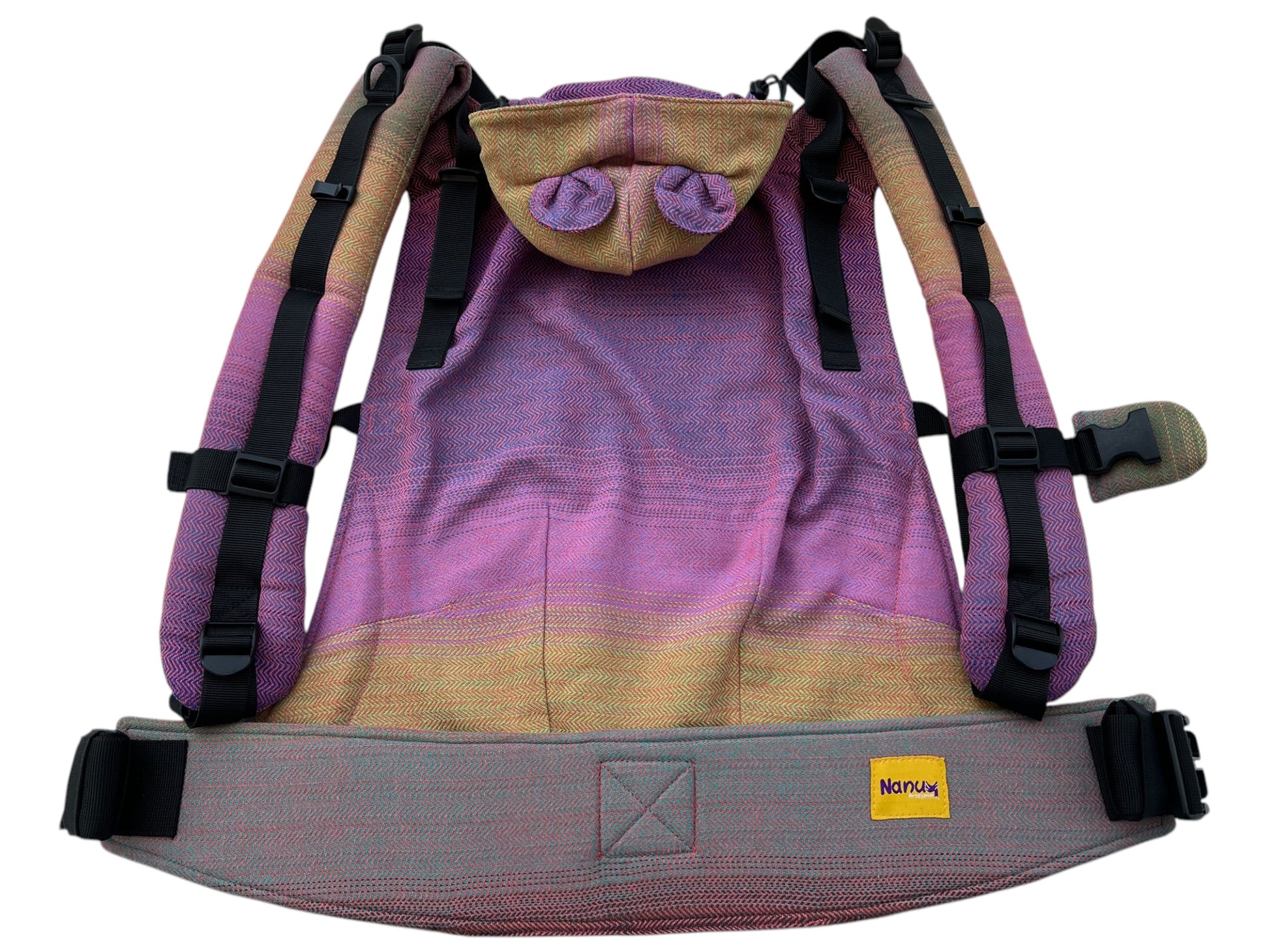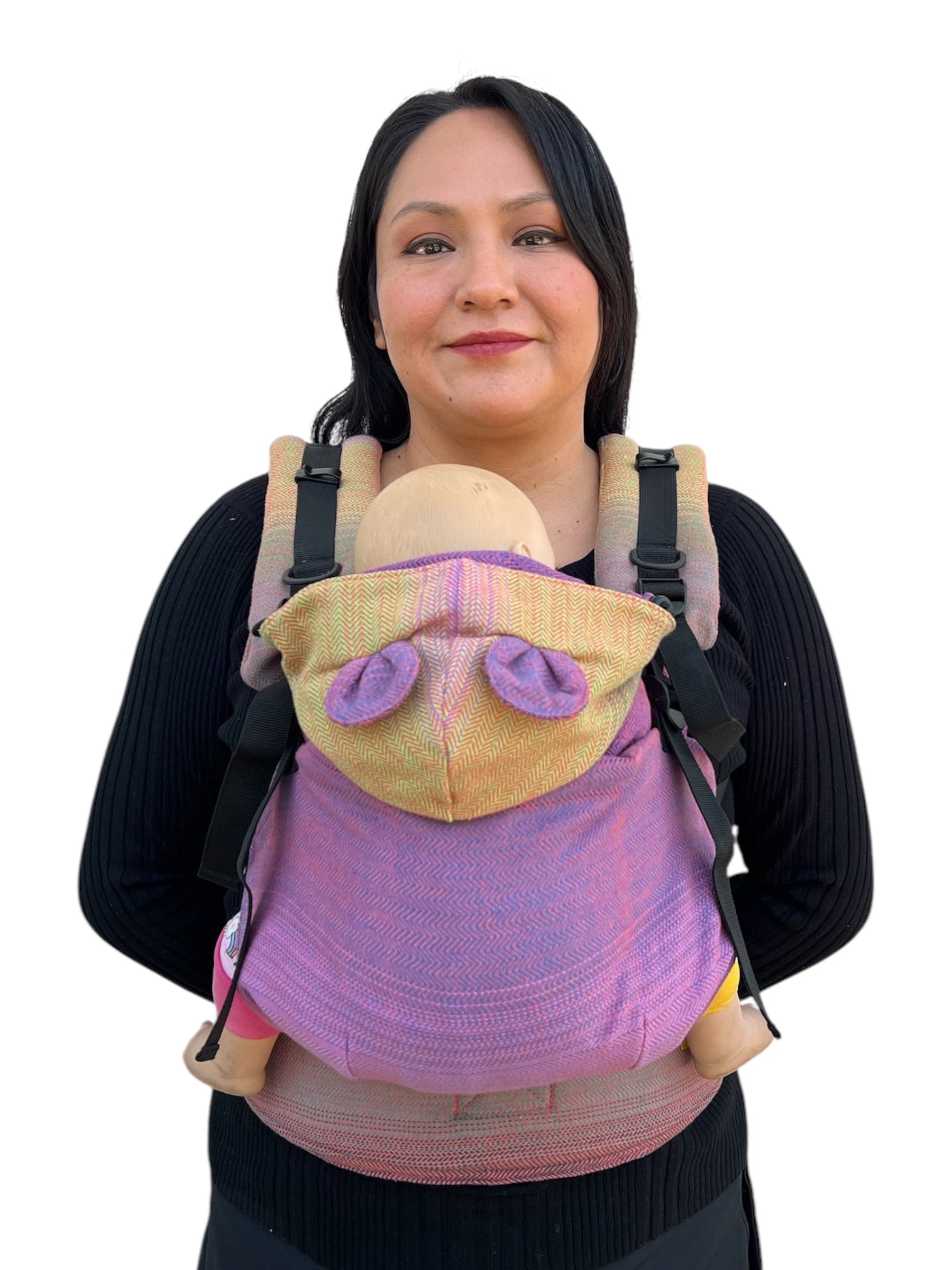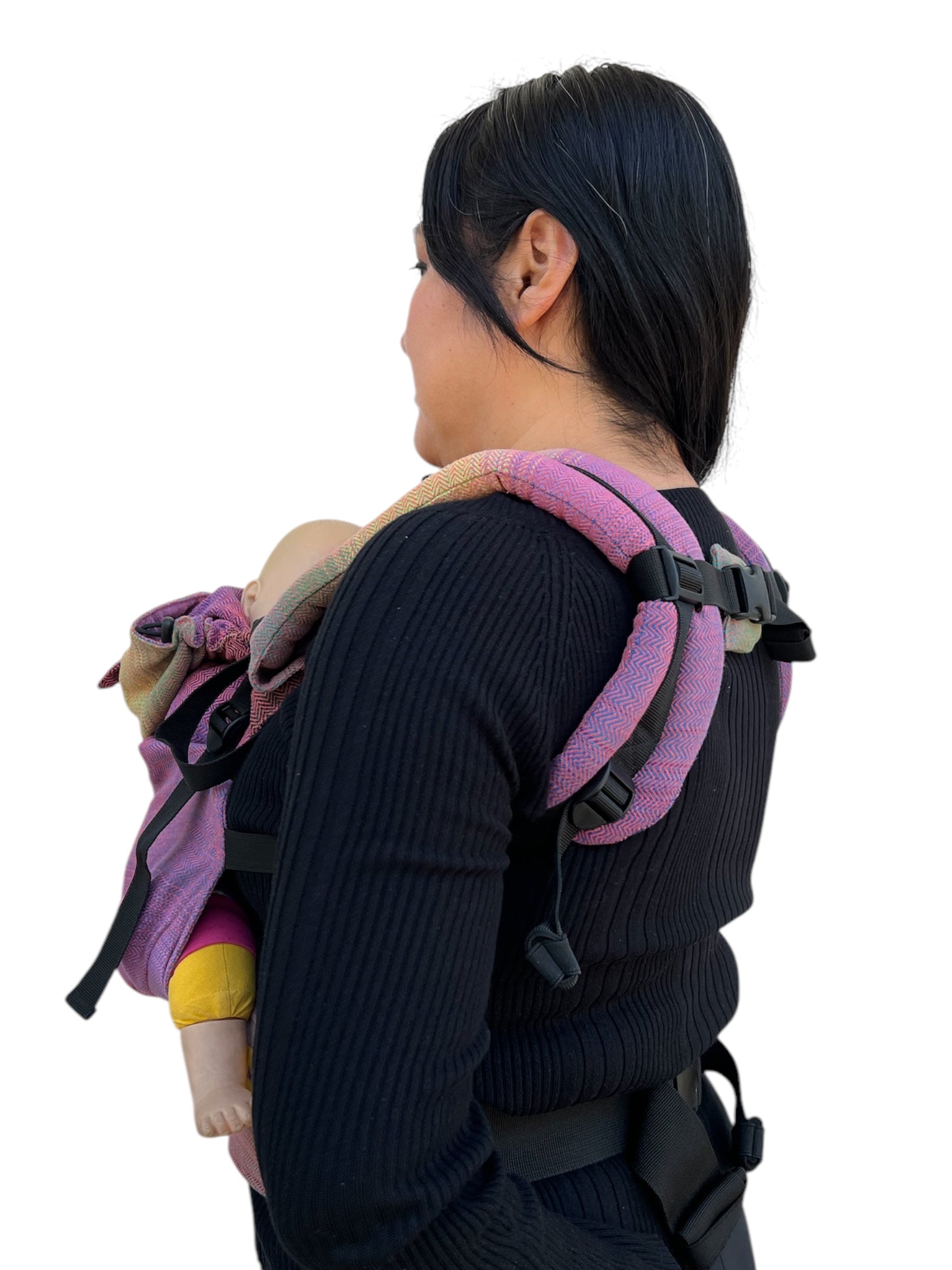 - Los tirantes se ajustan a la complexión del porteador y regula la altura para cuando es necesario, como en caso de lactar.