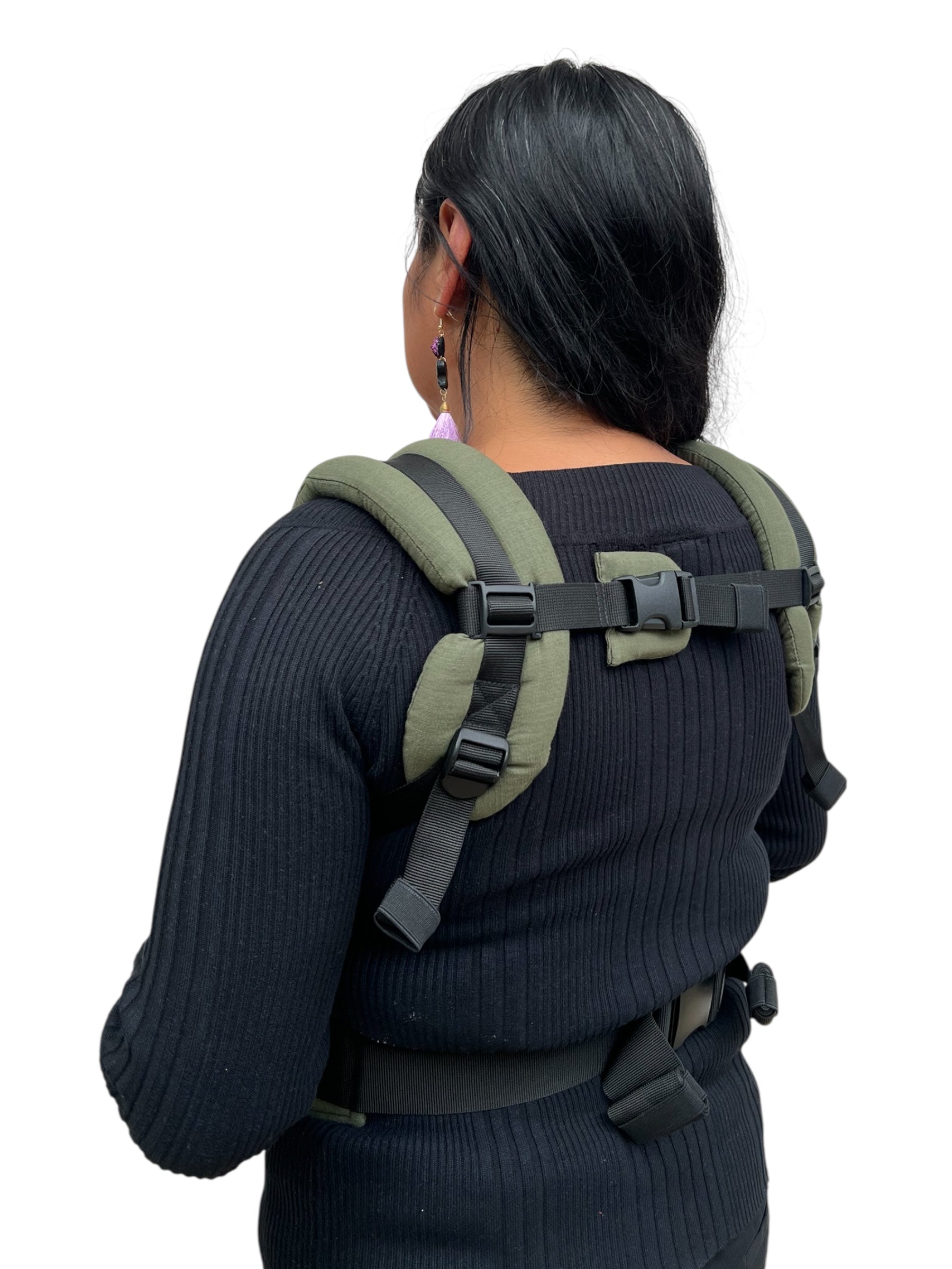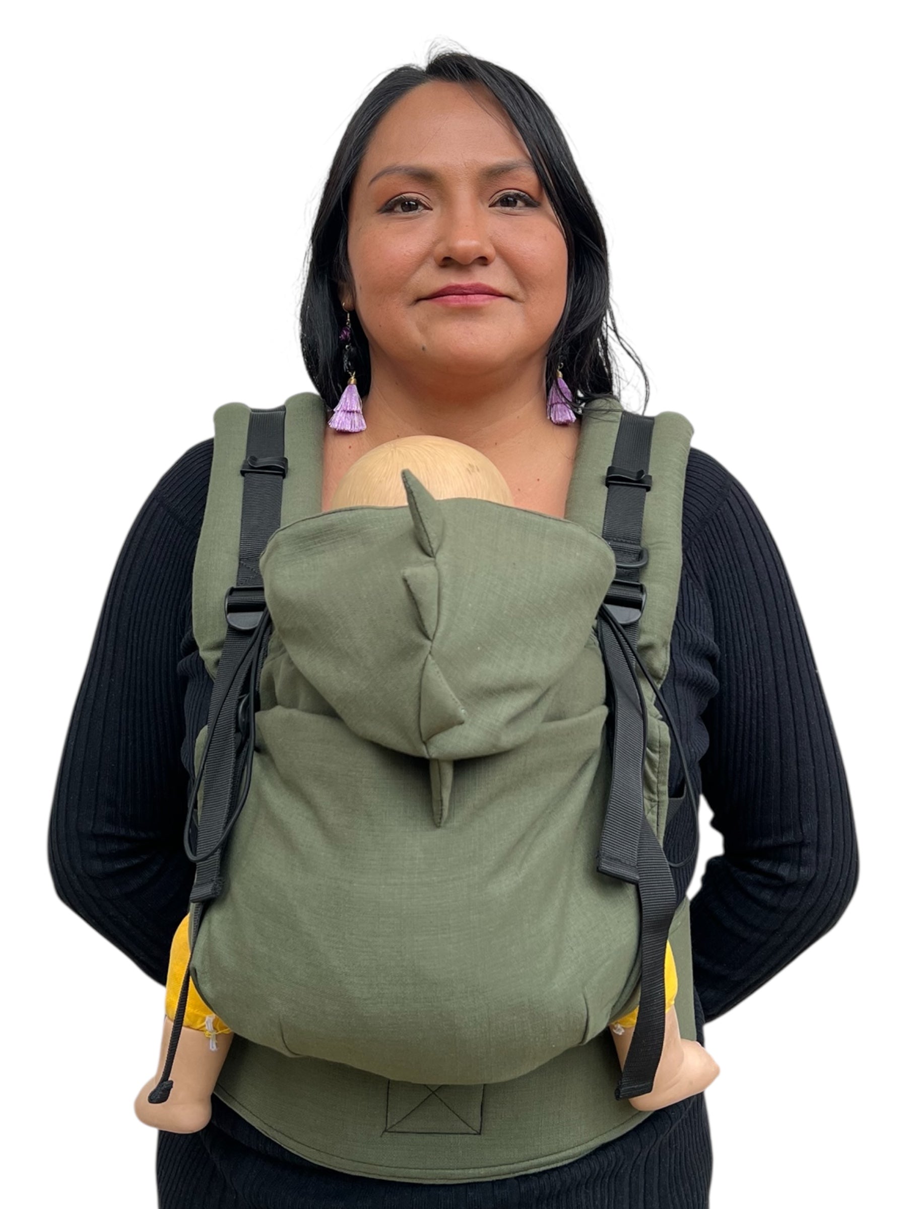 - Los tirantes se ajustan a la complexión del porteador y regula la altura para cuando es necesario, como en caso de lactar.