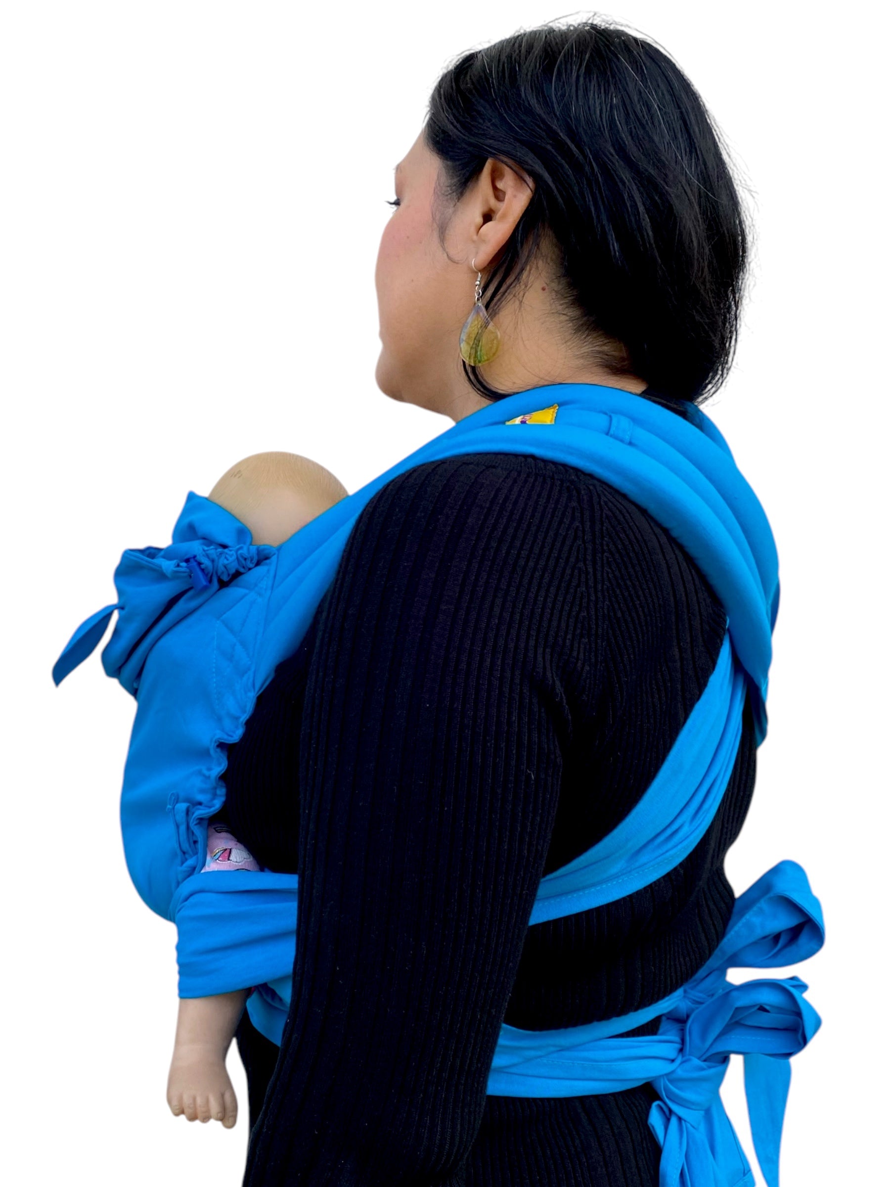 Es un cargador estructurado que se compone por un panel y 4 tiras largas que te ayudan a ajustar y asegurar al bebé.
