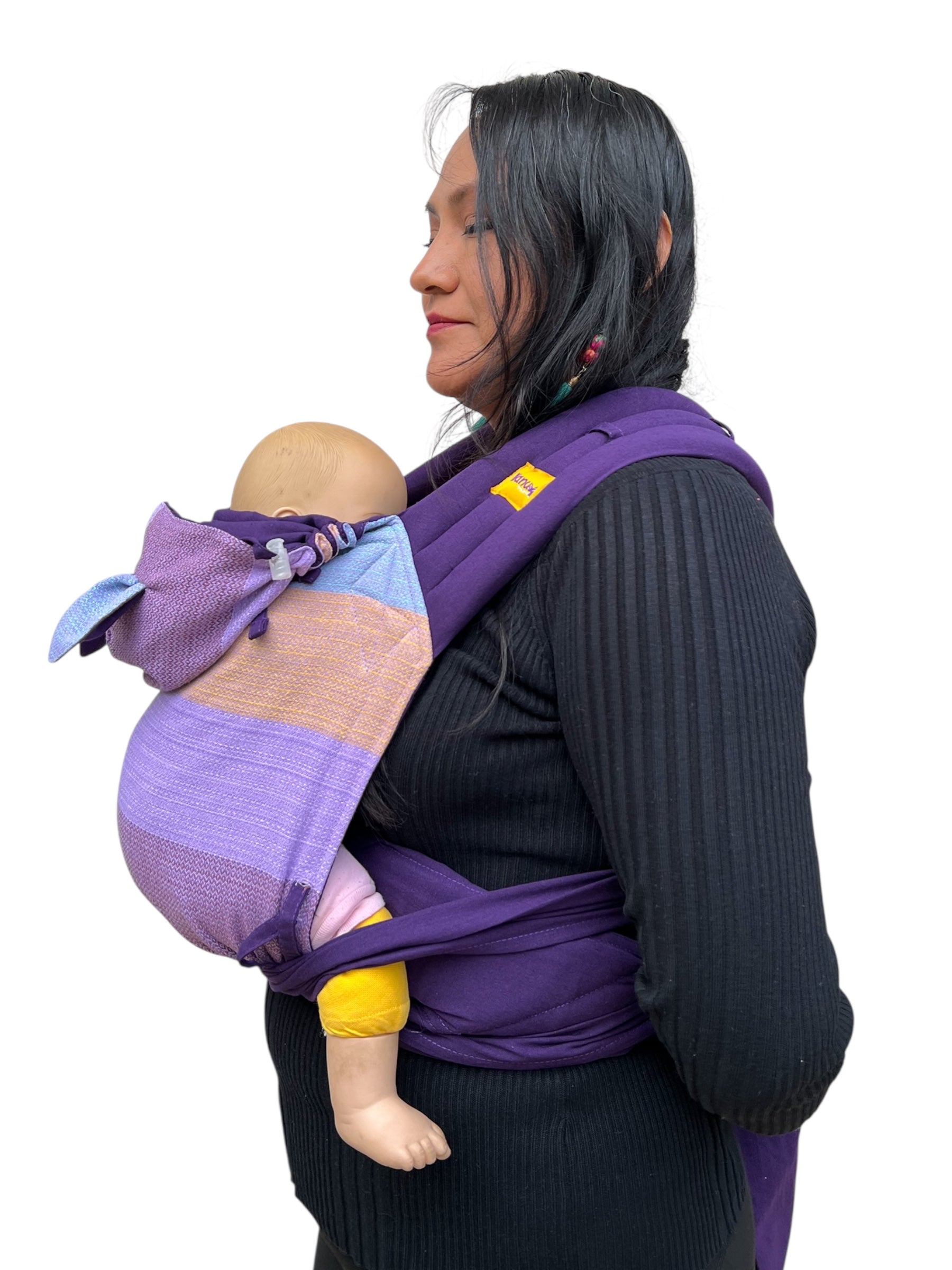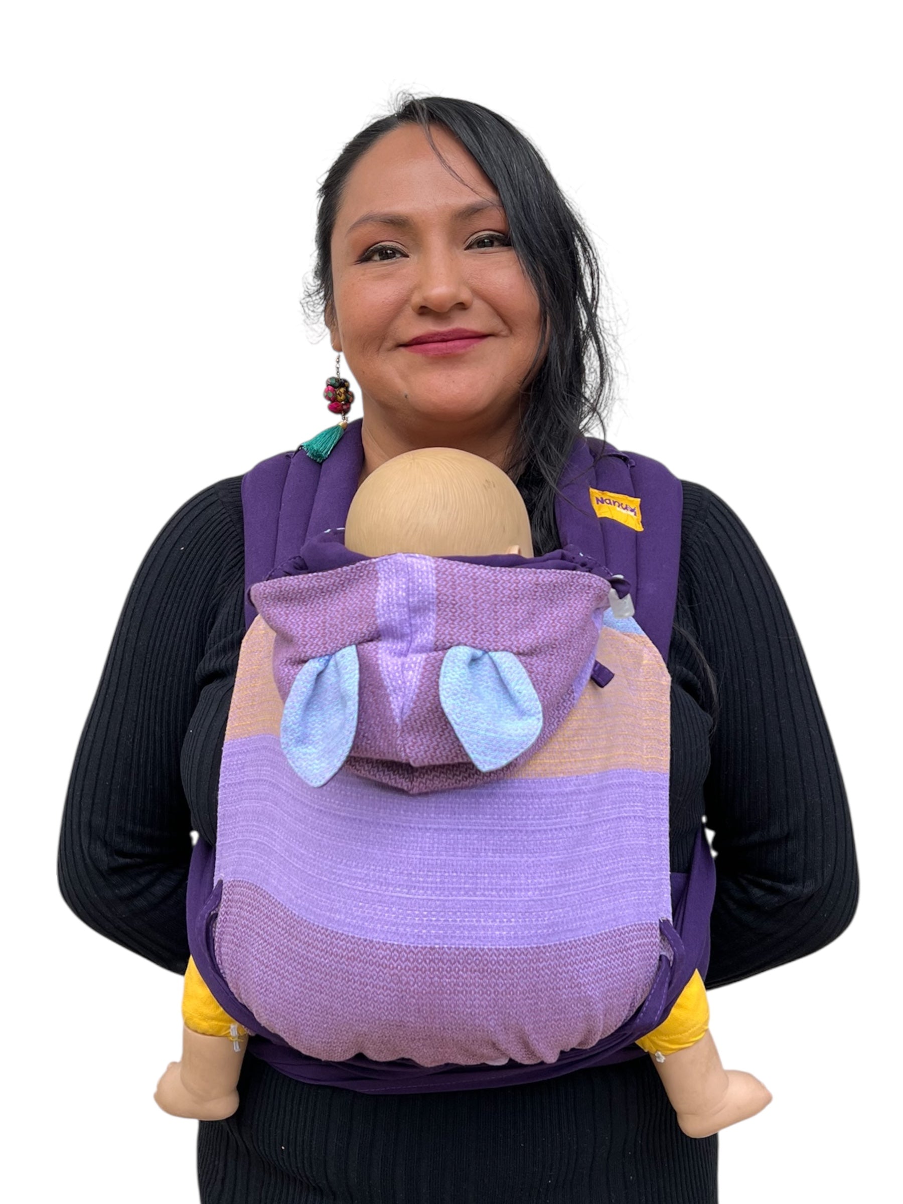 Es un cargador estructurado que se compone por un panel y 4 tiras largas que te ayudan a ajustar y asegurar al bebé. Tienen un sistema de ajuste con jaretas que te ayudan adaptar el cargador conforme tu bebé crece.