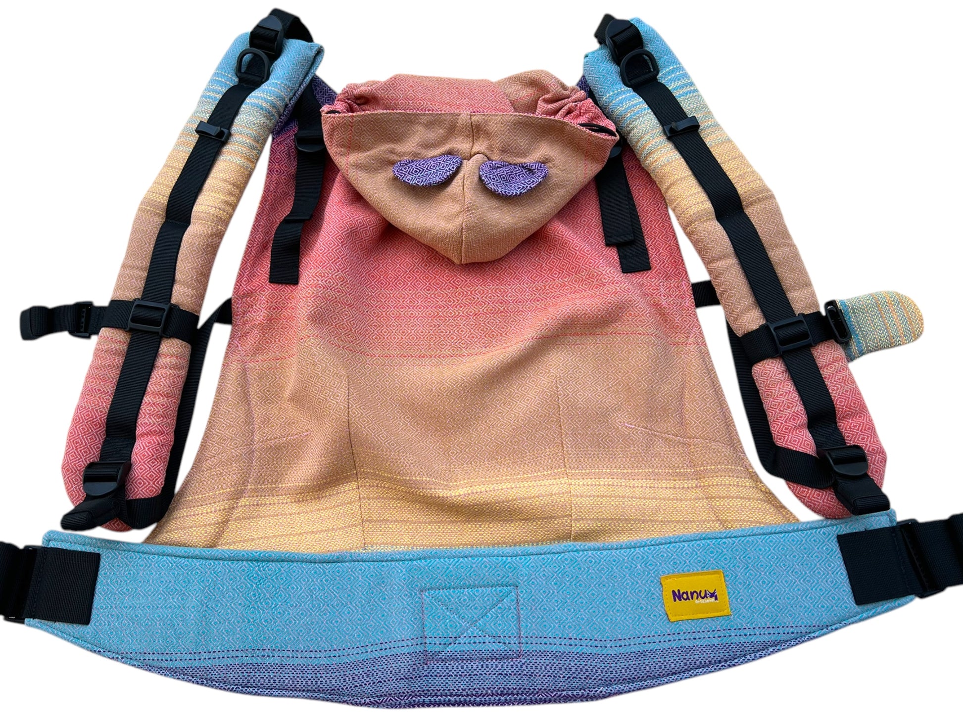 - Los tirantes se ajustan a la complexión del porteador y regula la altura para cuando es necesario, como en caso de lactar.